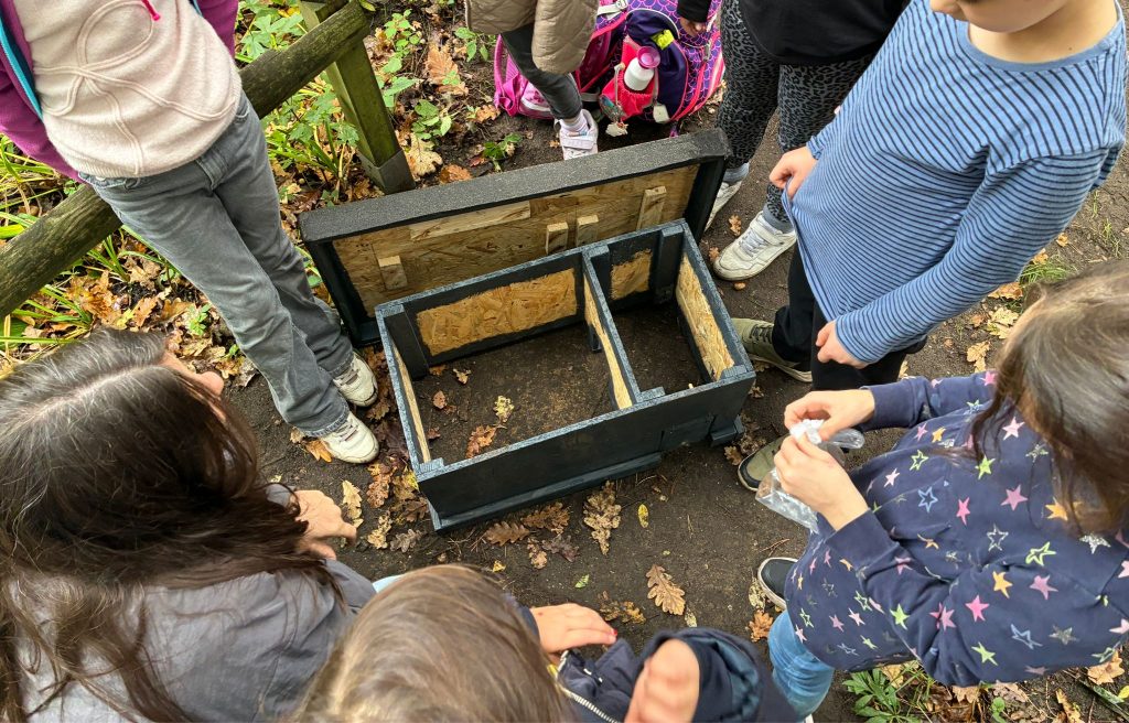 Die Schulgarten AG durfte heute ein Igelhaus einweihen. Der Förderverein hat die Kinder mit einem tollen Haus zur Überwinterung des Schulgarten Igels überrascht. Gemeinsam wurde ein Platz gesucht, Laub, Wasser und Futter bereitgestellt.